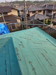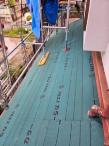 使用したルーフィングは日新工業「カラールーフィング」です。
