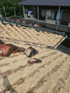 既存瓦屋根の撤去