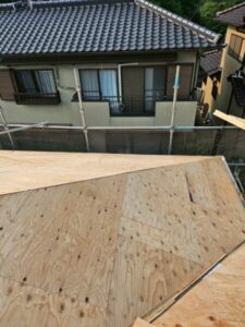 この度葺き替えですので、既存の瓦を取り外し、土台から造り直していきます。