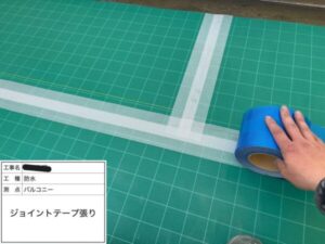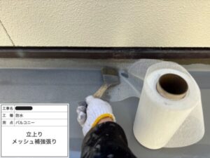 隙間のできないよう、立ち上がりや脱気筒周囲などにメッシュテープを貼ります。