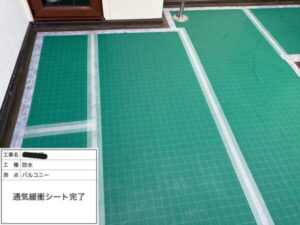 ウレタン防水層のトラブルをしっかり防ぐ、通気緩衝シートが仕上がりました。