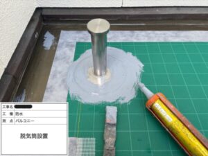 のちに取り付ける「脱気筒」と連携し、含まれていた水気が水蒸気として上がってきても、防水塗膜内に膨れを作ることなく外へ排出。つまり、水蒸気の逃げ道を確保することができる強みがあるのです。
