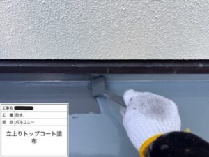 トップコートも、まずは立ち上がりと端部周辺から塗布します。
